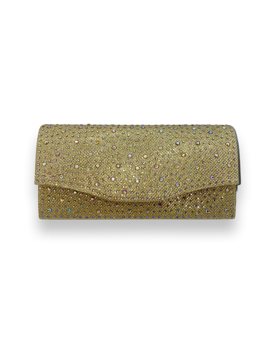 Making your evening even more desirable with evening clothes with a flap closure and metal chain.